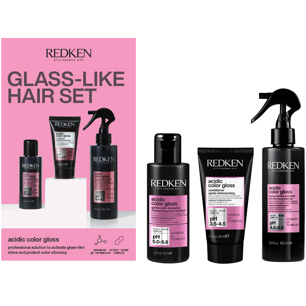 Redken Acid Colour Gloss Discovery Set offers three of Redken's best-selling products, specially formulated to ensure your hair colour remains vibrant with a glossy shine.