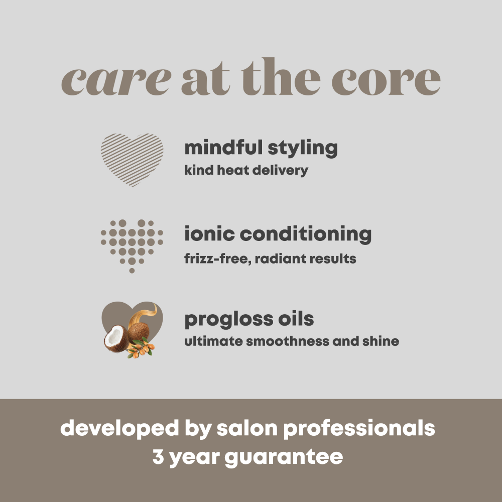 - Infused with Progloss™ Keratin, Argan and Coconut Oils.