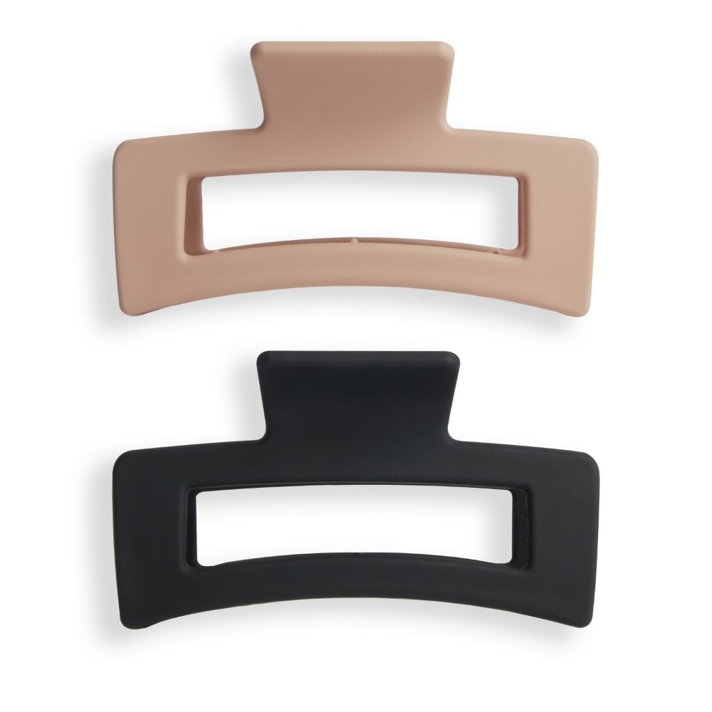 Revolution Haircare Rectangle Matte Claw Hair Clips Nude/Black Pack of 2