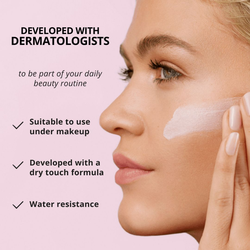 - Always remember to apply liberally to entire face. It is recommended to use at least 2 pumps of sun protection per application to deliver optimal protection.
