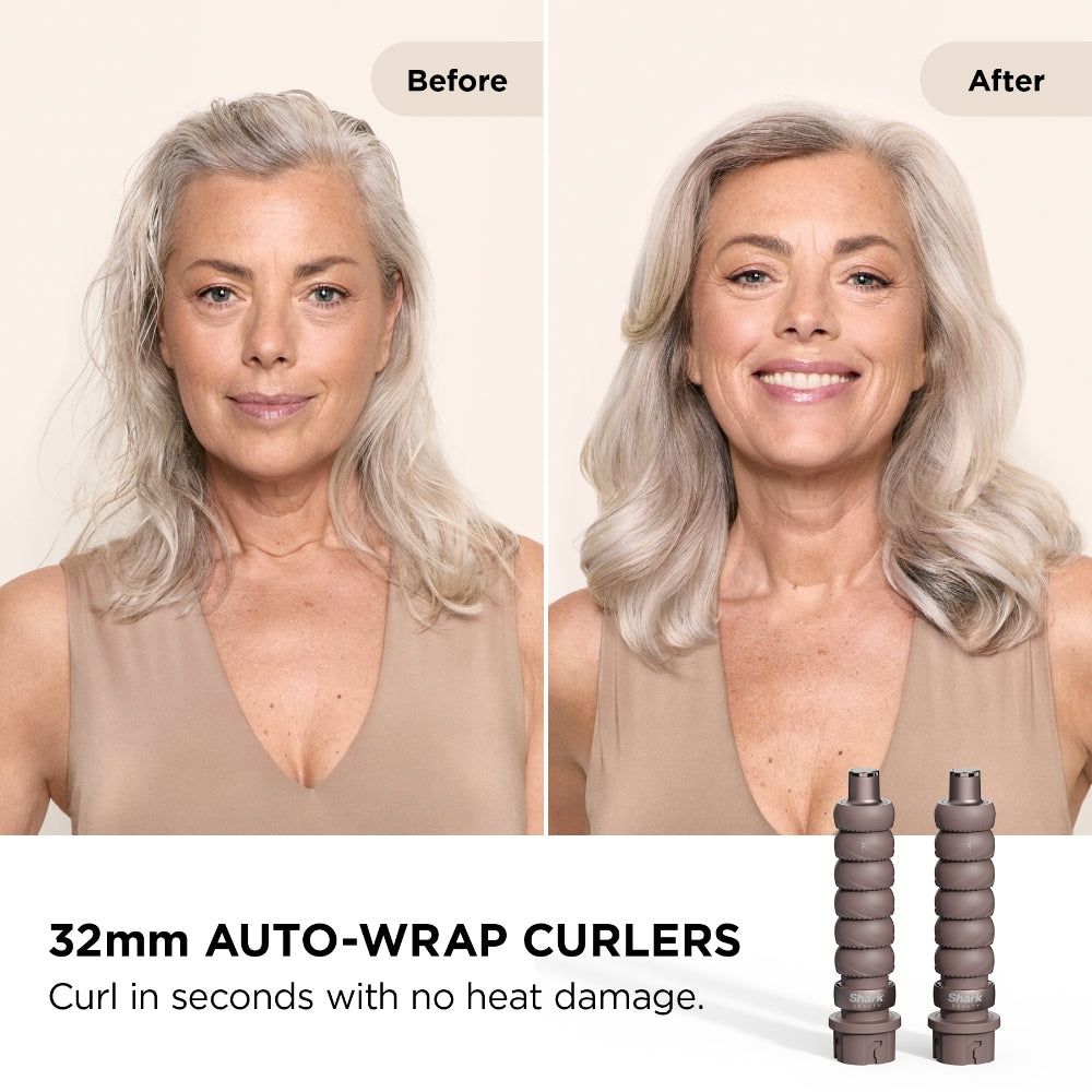 - 32mm Auto-Wrap Curlers - achieve perfect curls with Coanda Technology that wraps hair around the barrel, creating effortless, heat-damage-free curls in seconds.