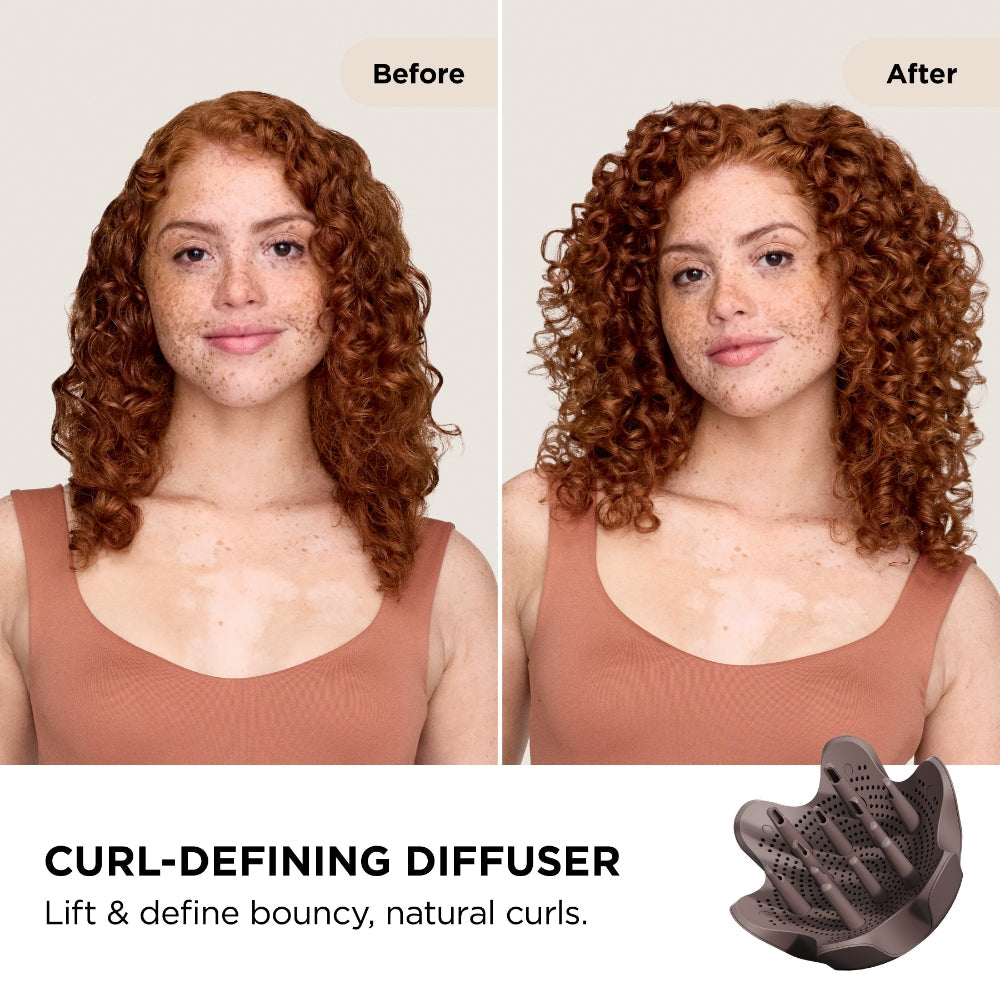 - Curl-Defining Diffuser - lifts and defines curls with extendable prongs to reach the roots for fast drying and beautiful, defined curls.