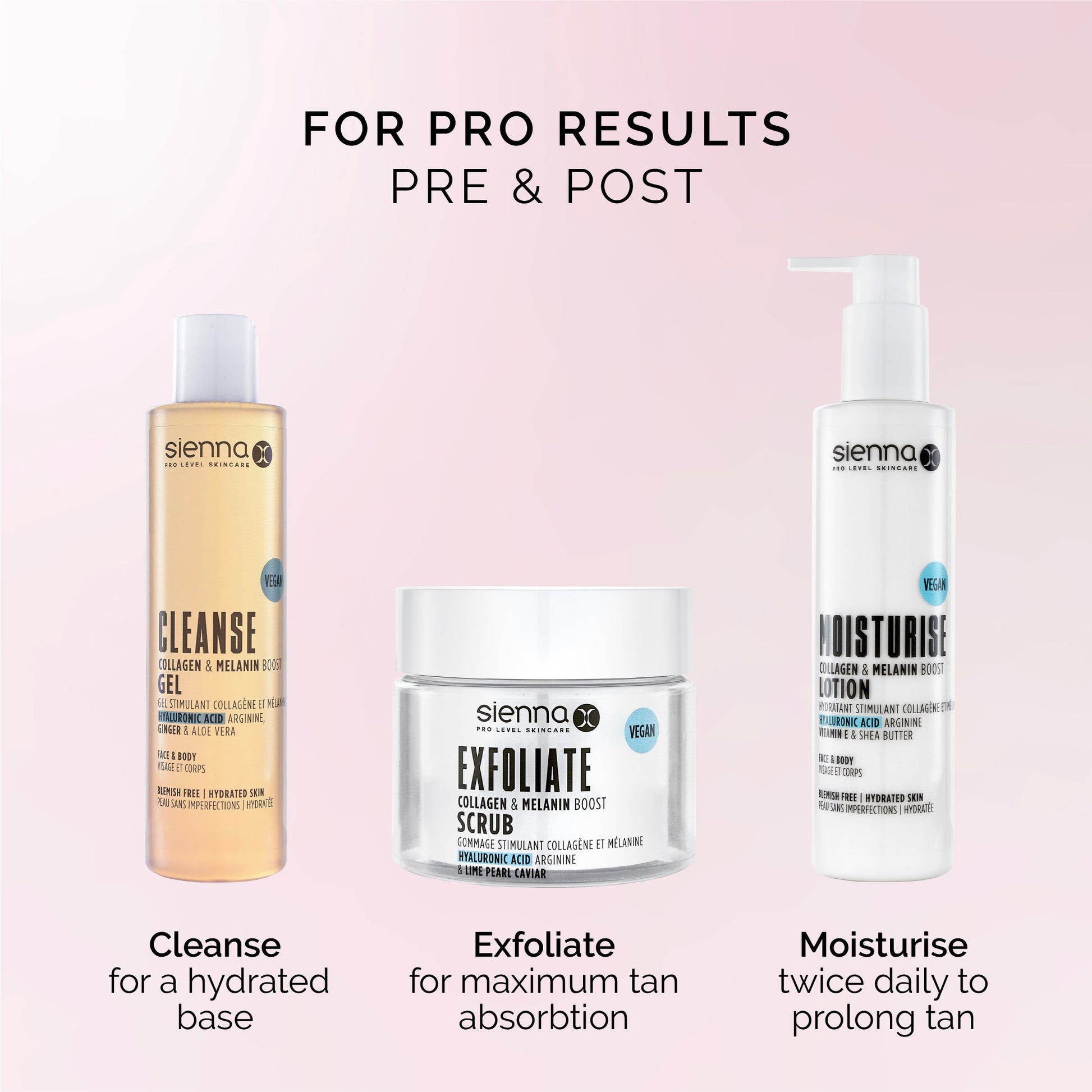 - Shake can well. Holding upright, dispense a small amount onto a Sienna X Luxury Self Tan Mitt and smooth evenly over the skin.