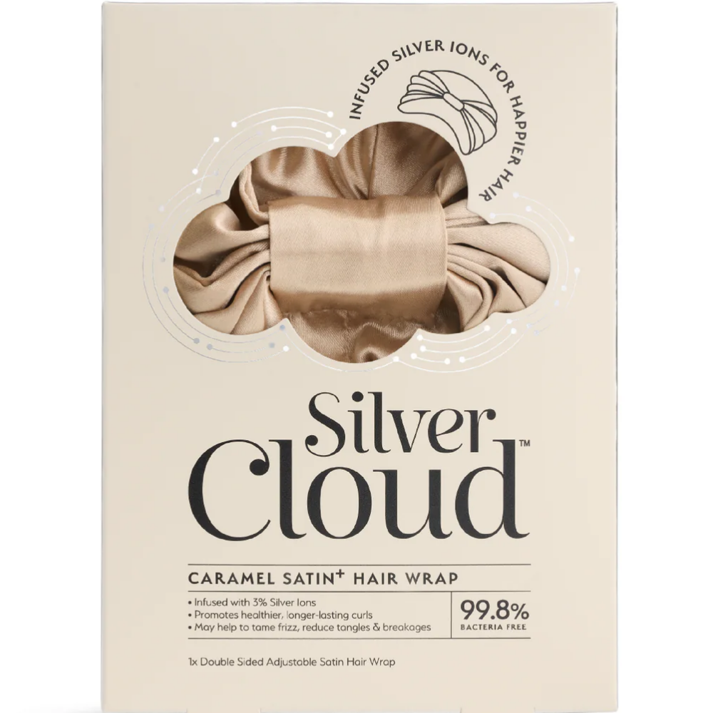 Silver Cloud Hair Wrap Caramel is crafted from luxuriously soft satin and infused with natural Silver Ions.