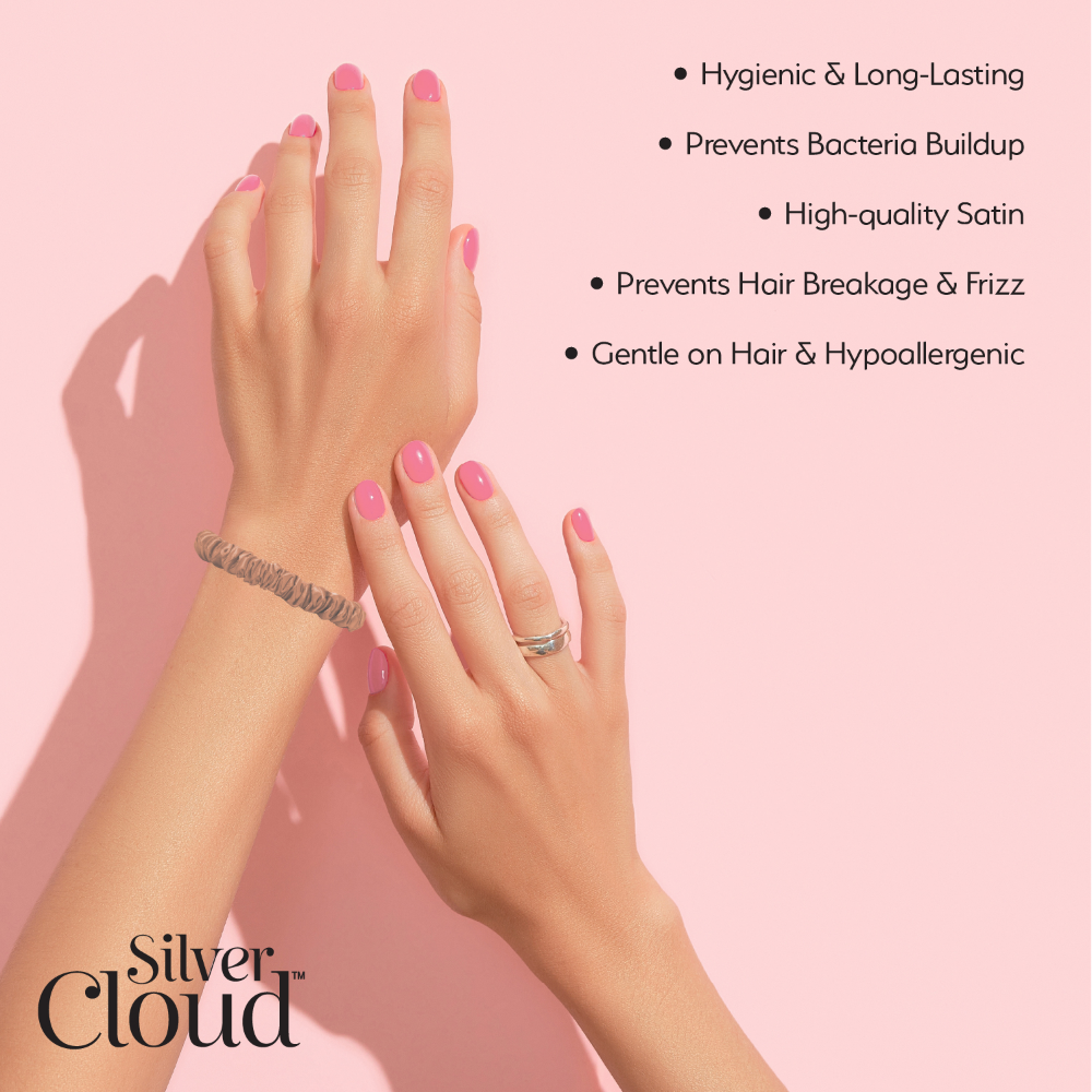 Infused with advanced Silver Ion technology and crafted from premium satin, these scrunchies not only accessorise your look but also promote healthier hair by inhibiting bacterial growth. The luxurious satin material minimises hair breakage and frizz, ensuring your locks remain smooth and well-maintained. Cruelty-free & vegan-friendly.