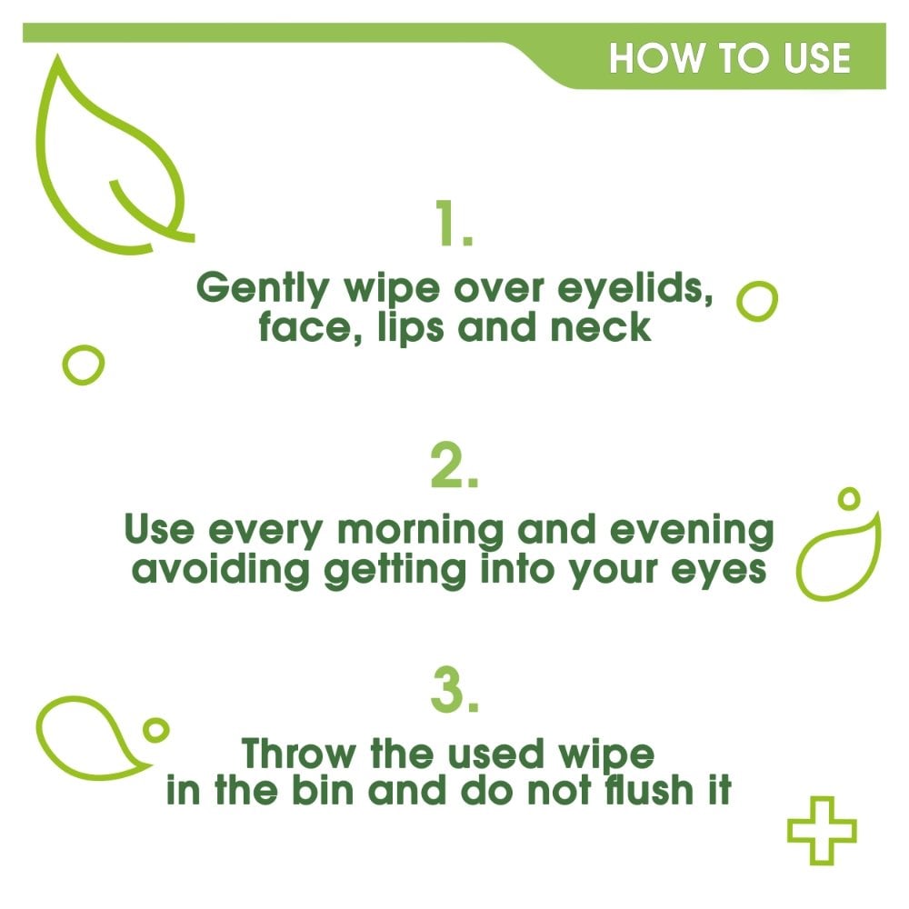 - Gently wipe over eyelids, face, neck, and even lips to cleanse the skin.