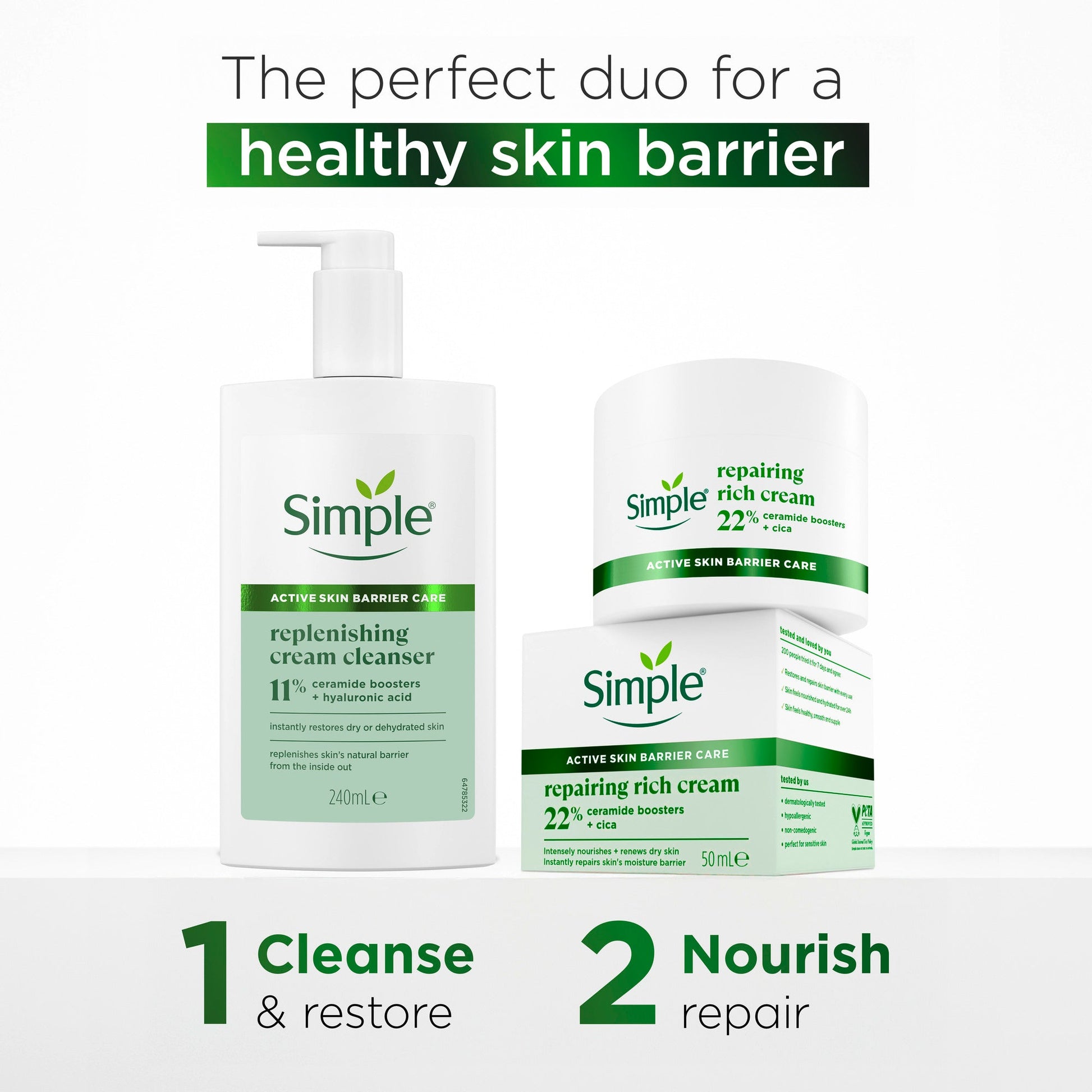 - For superior soothing care, start your skincare routine with Simple Replenishing Cream Cleanser.