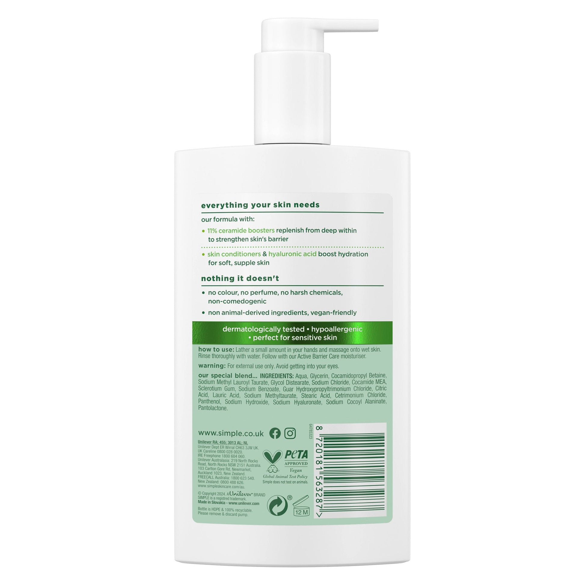 Simple Replenishing Cream Cleanser (240ml) transforms dry skin with every wash, restoring hydration for plump, supple results. This effective cream-to-foam formula lifts away all traces of makeup, pollution, and impurities while nourishing and repairing the skin's natural moisture barrier.