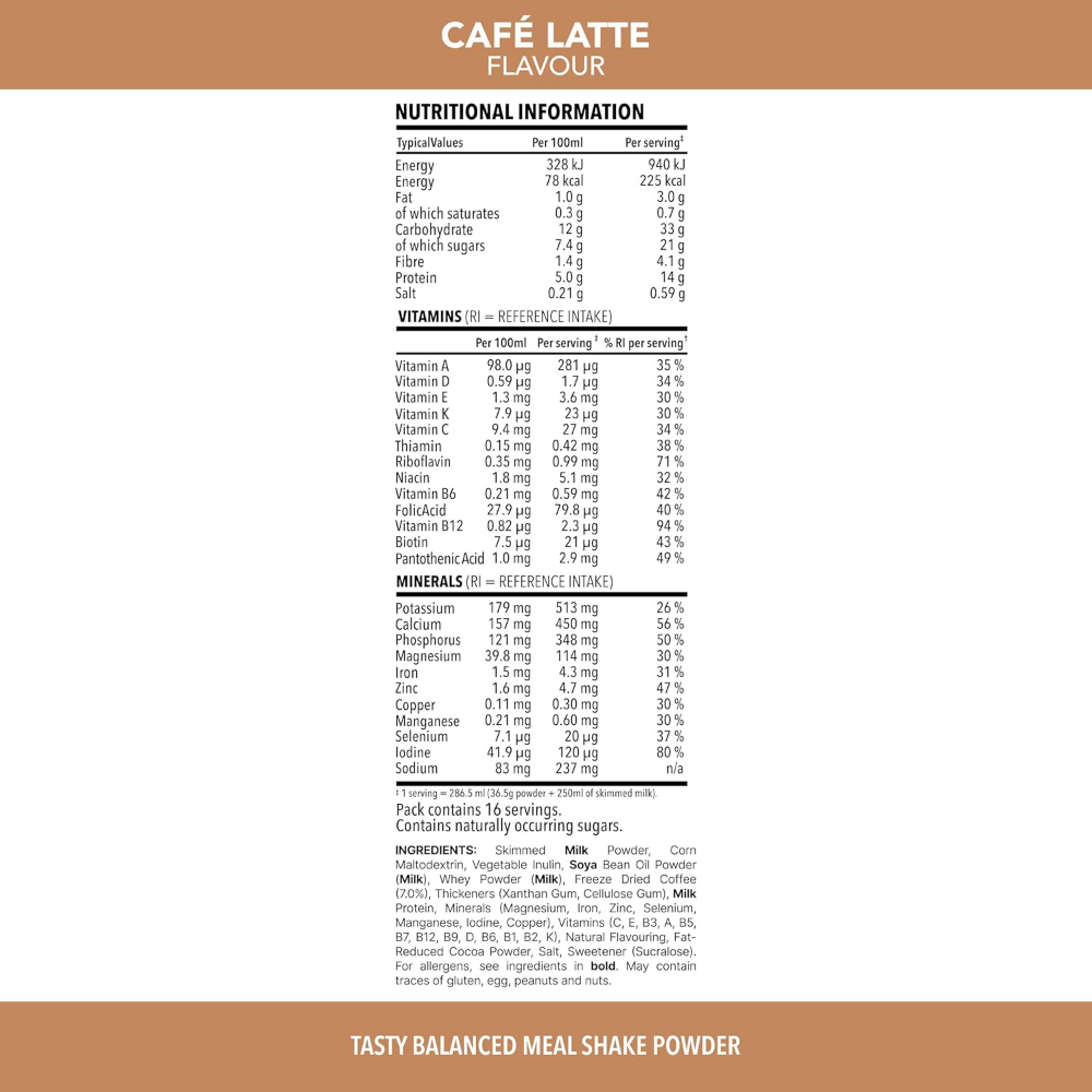 SlimFast Tasty Balanced Meal Powder Cafe Latte Tub (584g) offers a convenient and delicious way to support weight loss and long-term weight maintenance. Each smooth, cafe latte-flavoured shake is quick to prepare and packed with 15g of protein, a source of fibre, and enriched with 23 essential vitamins and minerals including Vitamin B6, B12, Magnesium and Zinc.
