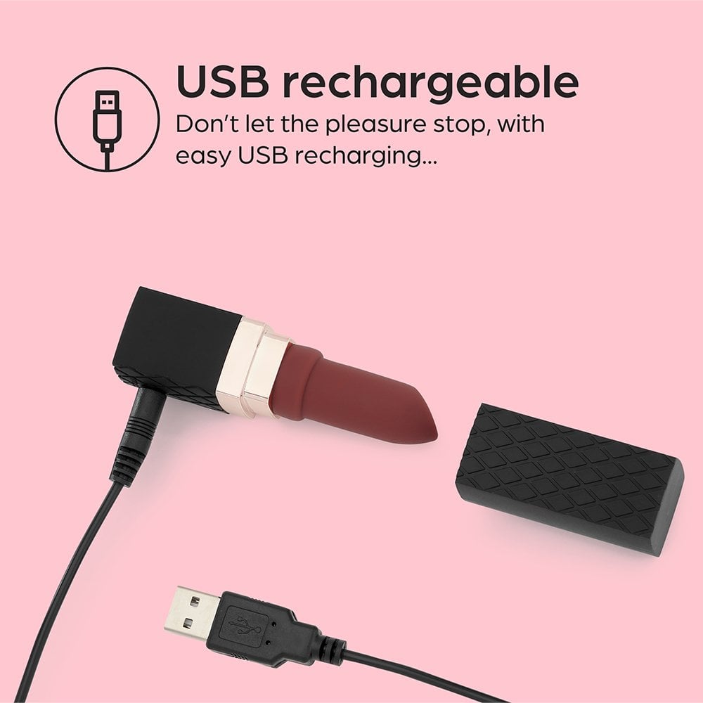 So Divine Amour Lipstick Vibrator offers a choice of 10 stimulating functions with a soft, silicone tip for ecstatic accuracy. Providing safe and playful pleasure, this vibrator takes you on a journey of heightened arousal with its 7 passion patterns and 3 speeds. Ingeniously disguised as a premium brand lipstick for total discretion, this rechargeable vibrator is the perfect partner travel partner of self loving.