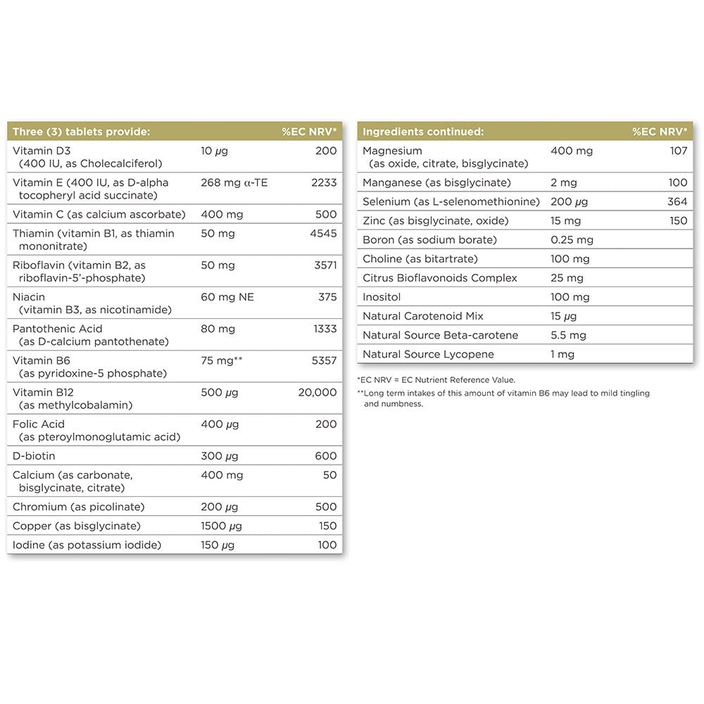 The formula includes 26 individual nutrients and supports heart, brain and immune system function, normal Collagen formation, and maintains healthy bones and teeth. Antioxidants negate free radical attack and combat oxidative stress.