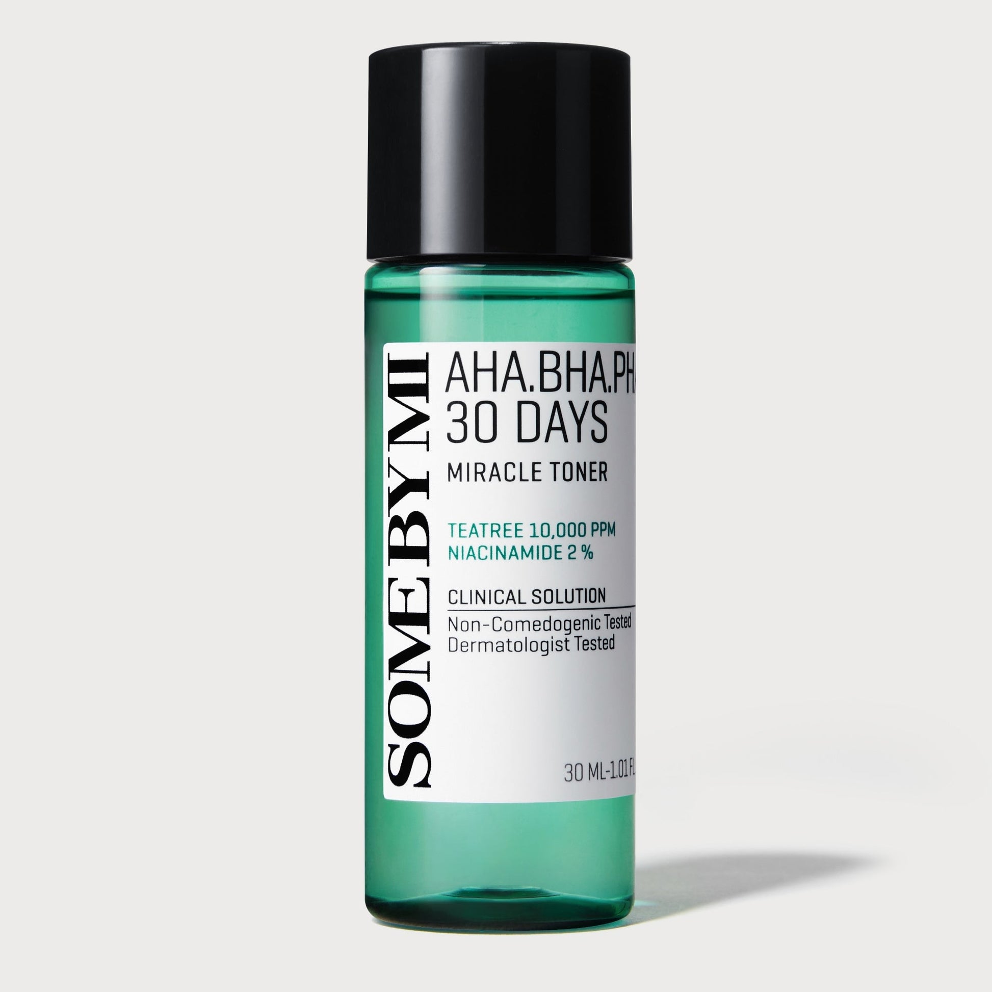 - 1 x Some Bi Me 30 Days Miracle AHA, BHA, PHA Toner (30ml) - incorporates natural Tea Tree Extract with a potent blend of AHA, BHA, and PHA exfoliate, purify, and revitalise skin. This toner is designed to leave the skin clearer and more radiant than ever before. Its low pH formulation is designed to be gentle enough for all skin types, including those with sensitive and acne-prone skin. Infused with Tea Tree Extract that tackles acne while the AHA component works to remove dead skin cells, BHA targets wastes and sebum accumulated in pores, and PHA prevents skin moisture loss while dissolving dead skin. Within just 30 days of use, this toner can transform your skin, ensuring your skin remains hydrated and healthy.