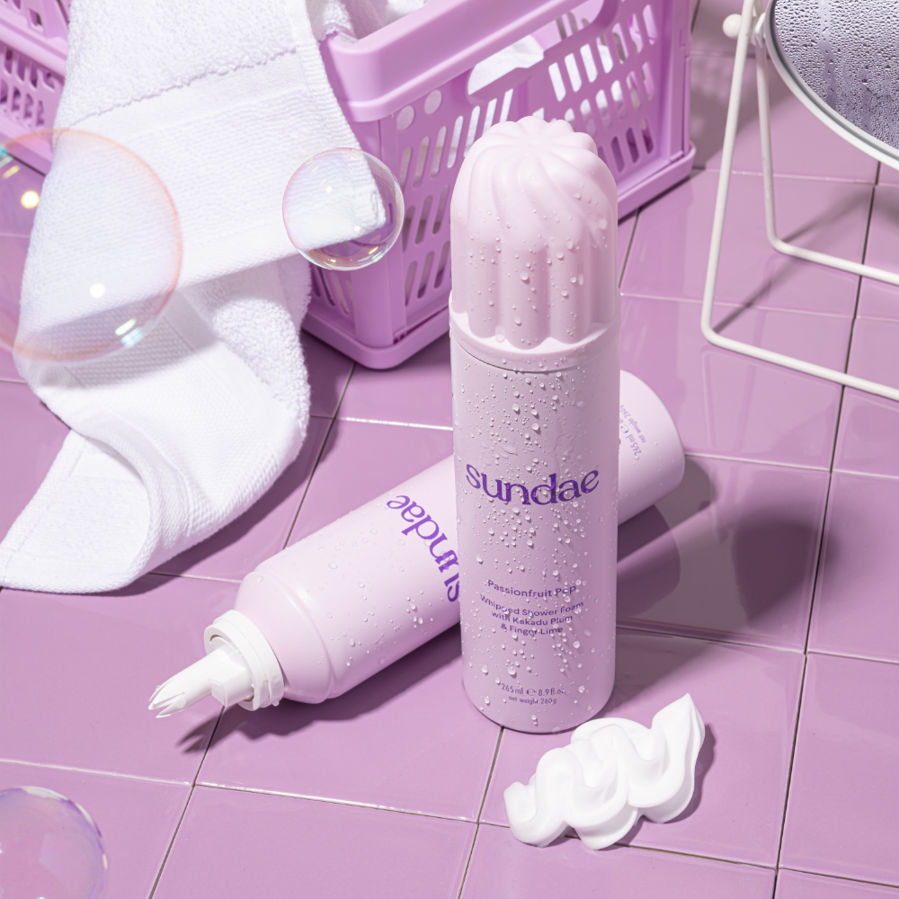 - Sundae Shower Foam is best served upside down. Shake well and spray a dollop into the palm of your hand.