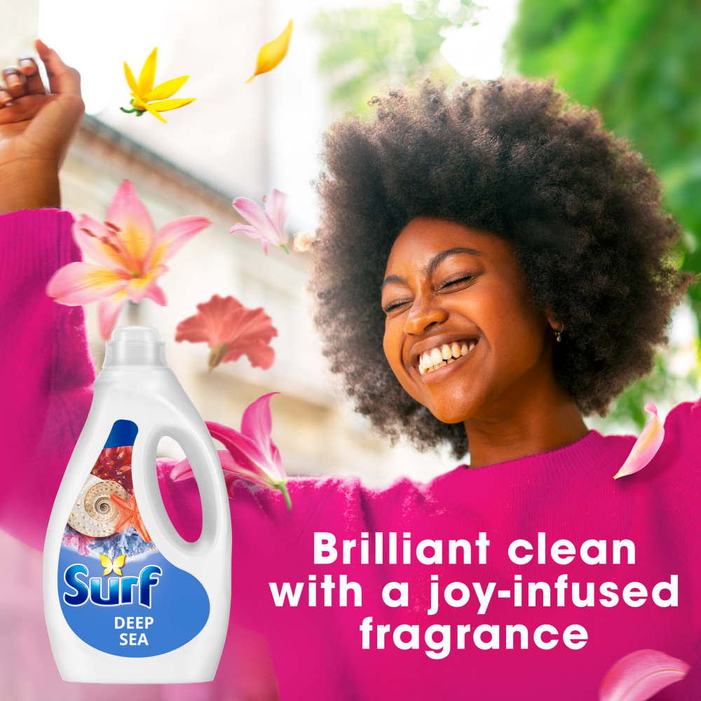 Surf Deep Sea Concentrated Liquid Laundry Washing Detergent (44 Washes, 1188ml) immerses you in a wave of joy with a refreshing blend of crisp oceanic notes and fresh Lavender which lingers from morning to night.