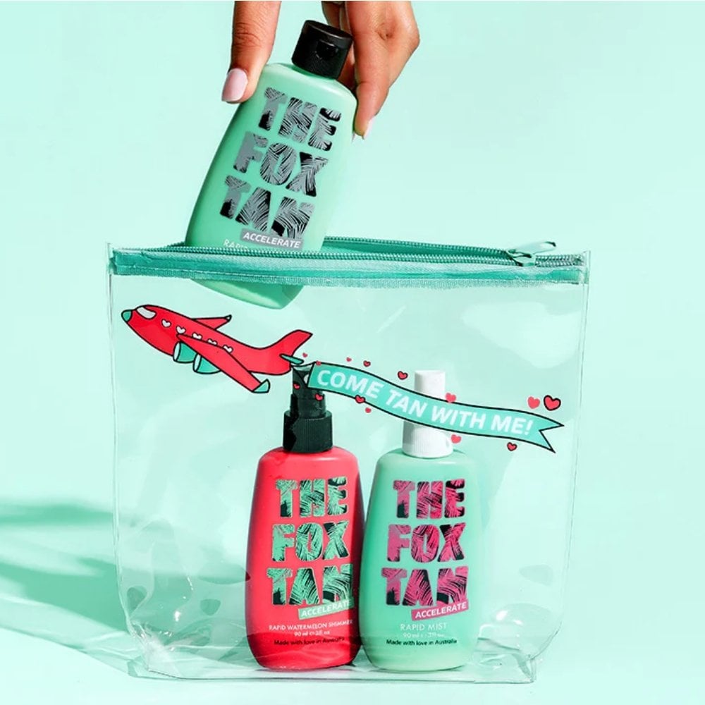 The Fox Tan 3 Piece Jet Setter Travel Pack is a bundle of The Fox Tan tanning products presented in a cute zippy pouch for your sunshine vacation.