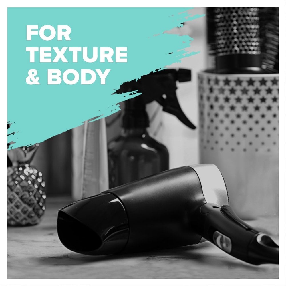 - Spray evenly over damp or dry hair to create a rough texture and tousled waves.