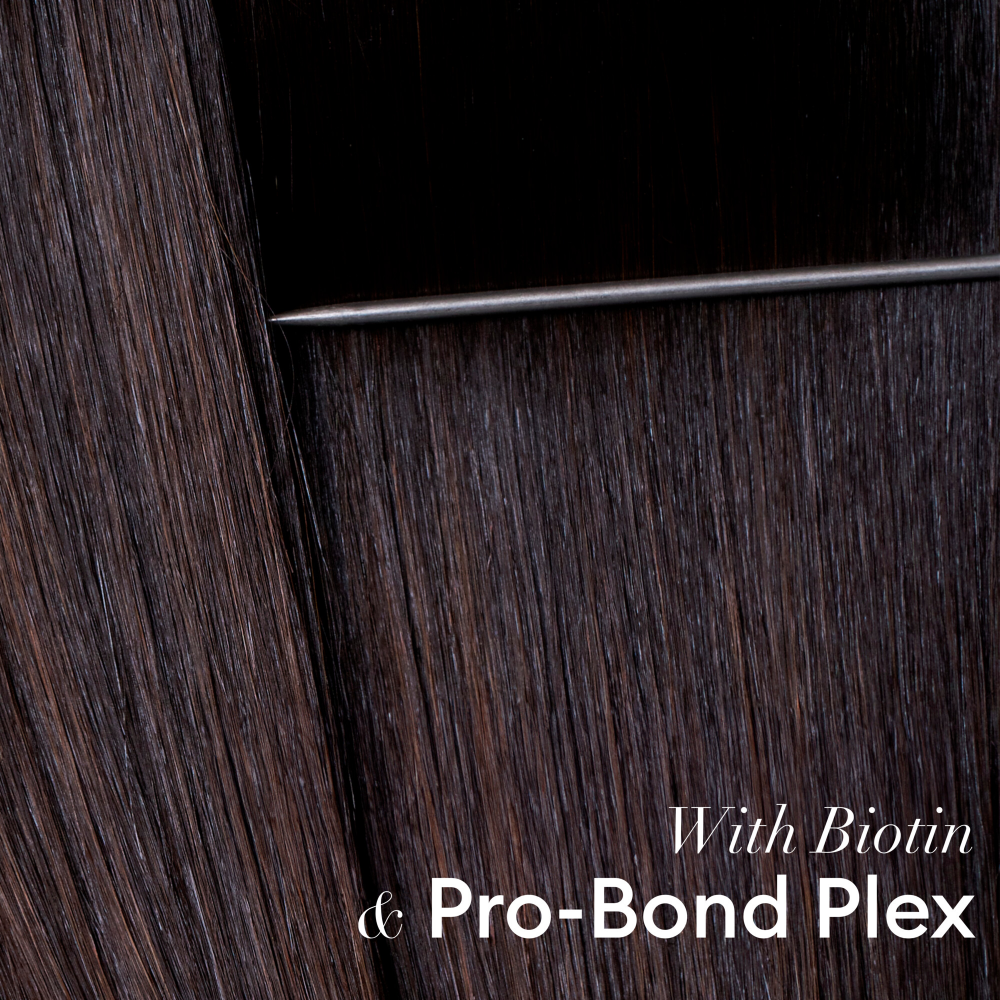 Infused with Biotin and Pro-Bond Plex, this advanced formula penetrates deep into the hair fibres, helping to restore resilience and reduce breakage by up to 98% with continuous use. Lightweight and nourishing, it leaves hair up to 3x stronger, smoother, and more protected against external damage. Cruelty-free.