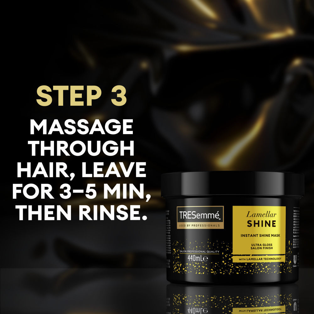 - Rinse thoroughly and follow with TRESemme Lamellar Shine Conditioner.