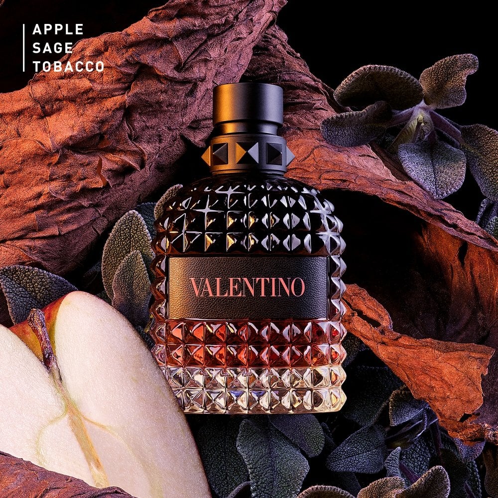 This fragrance centres around a Red Apple Accord, twisted with notes of Tobacco, a surprisingly elegant mix which evokes warmth from within. Bright Geranium at the heart is complimented by Clary Sage. Warm Tobacco rounds of the fragrance, elevated by Patchouli to reveal a bold and powerful finish. The fragrance is housed in an ombre black and coral pink multi-faceted bottle, finished with the Valentino logo.