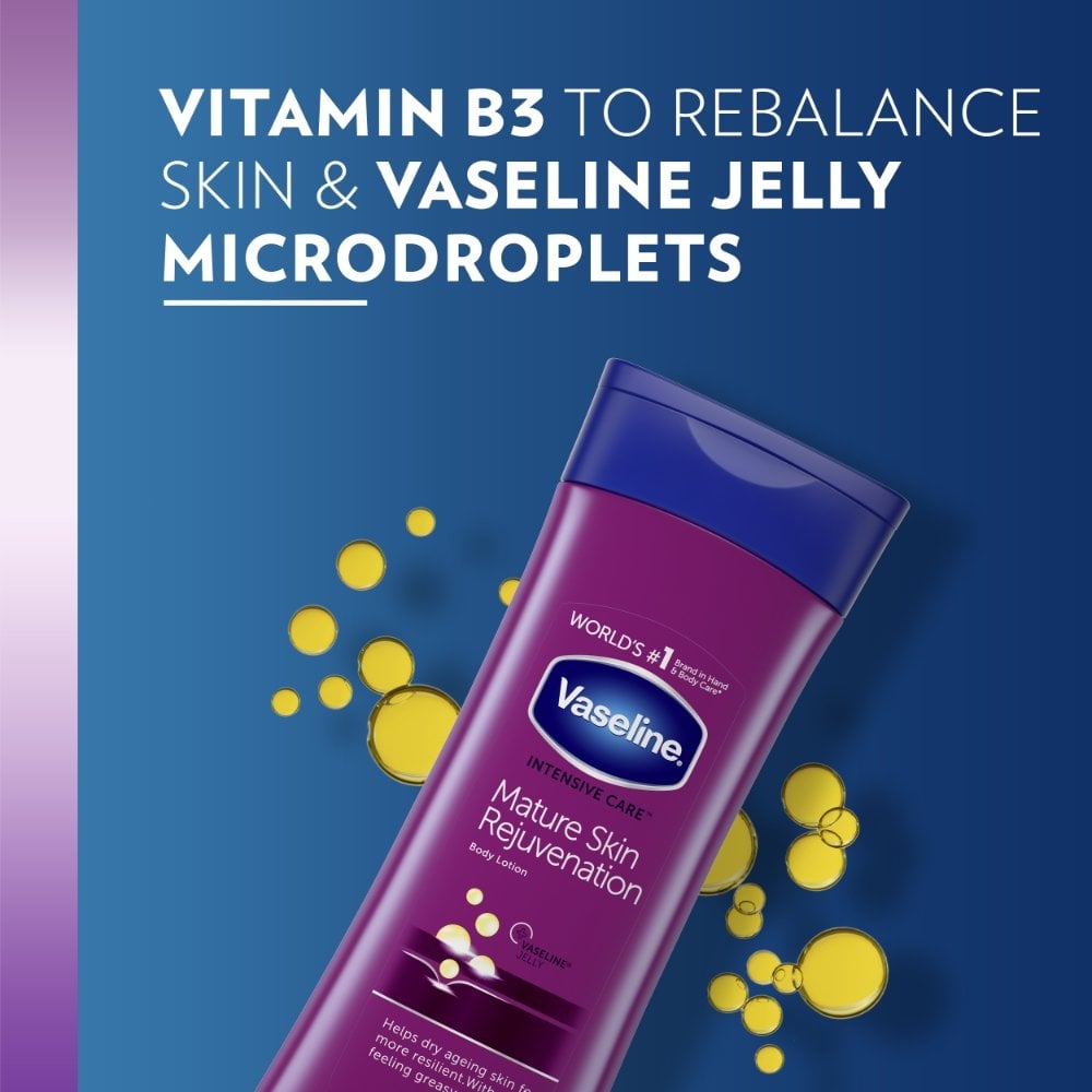 Vaseline Intensive Care Mature Skin Rejuvenation Lotion (400ml) promotes the healing of the severe dryness associated with mature, ageing and menopausal skin, promoting softer, healthier-looking skin. From the first application, firming Vaseline Intensive Care Mature Skin Rejuvenation Body Lotion starts to heal and balance your skin.