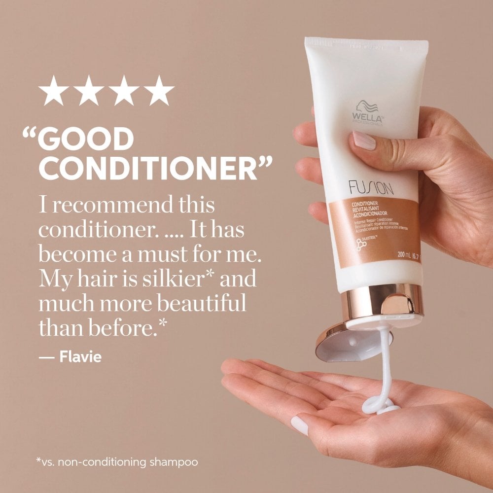 - Apply to damp hair washed with Wella Fusion Shampoo.